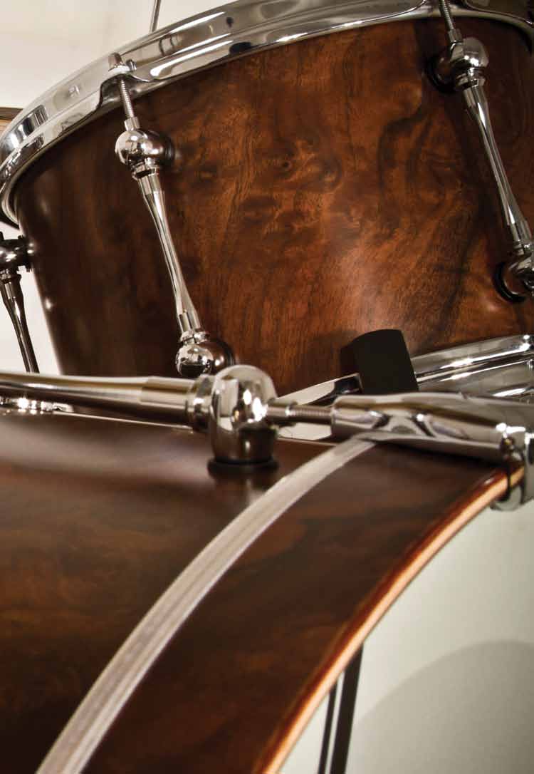 Looking back and moving forward! Retrosonic is a classic without the wait. The shells are hand selected walnut and outfitted with the unique Retrosonic full-length tube lugs and Sonic Saver hoops. With a Walnut Burl veneer finish, it comes as a simple and elegant three-piece set-up that’s reminiscent of drum-building tradition from another age. Only 100 of these individual set-ups will be available worldwide (30 in the UK).