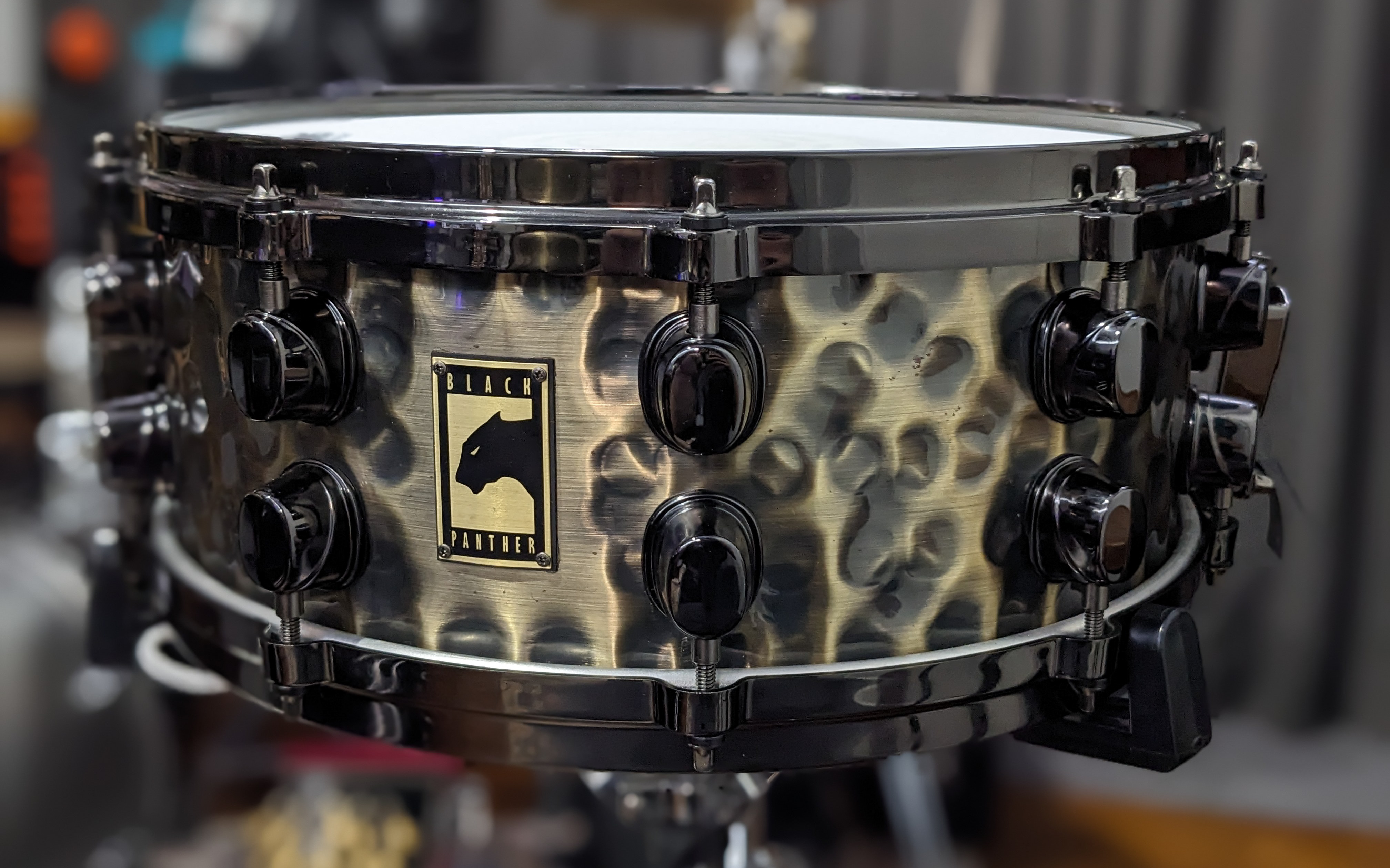 The one I thought you might like is my limited limited edition Bronzed Hammered Brass BPBZ455HLB snare. When KHS first presented the new BP Bronzed Hammered Brass snare to my team and I (I am gonna guess it was at NAMM '05), they showed us this prototype with black chrome hardware (Serial No 061). They said the final version would have custom brushed bronze hardware, but the hardware wasn't ready in time for NAMM. I felt the black hardware complemented the black chrome throw-off and butt-end, and really just looked so cool overall  We had just won their "distributor of the year award" and they (reluctantly) let me keep their prototype ðŸ˜€  As far as I know, it's the only one they ever made!