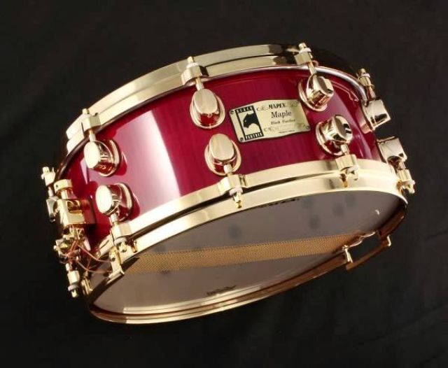 One of four snares produced by Shimano San as part of the Mapex Japan / Beyond Shimano collaboration in late 2013. All have 24K gold die-cast hoops and his special extra-hard maple ply construction, with differing outer plys and finishes.