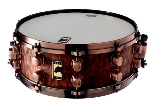 Apparently (if I'm reading the Japanese correctly), the finish is initially created using a camping burner, and is then oiled. The trick is in not burning the wood, so it's not an easy finish to produce. Also, these snares are now impossible to reproduce since there are no brushed brass parts left (the ones used on the Mayan).